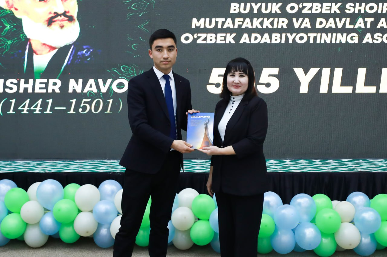 ✍️ Tadbir o‘tkaziladigan joy bayramona milliy ruhda bezatildi. Alisher Navoiy asarlari, shoir ijodi bo‘yicha banner bukletlar burchaklari tashkil qilindi. Tadbirda Alisher Navoiy bobomizning boy ilmiy va ma’naviy merosi, o‘zbek adabiy tilining rivojidagi beqiyos o‘rni, uning asarlarida ilgari surilgan insonparvarlik, ezgulik va komil inson g‘oyalari, Navoiy asarlarining bugungi kundagi ahamiyati, yosh avlod tarbiyasidagi o‘rni hamda milliy o‘zlikni anglashdagi muhim jihatlari haqida atroflicha ma’lumotlar berildi.